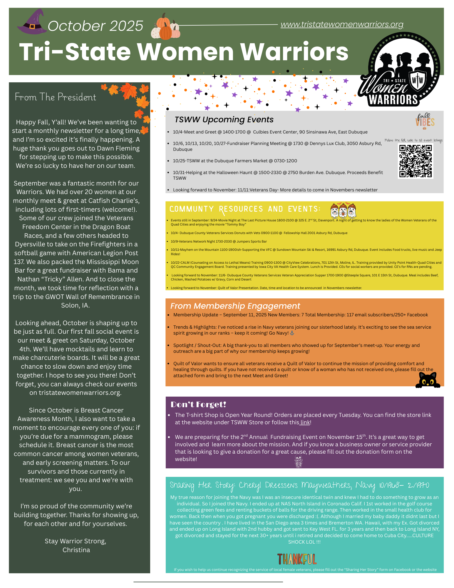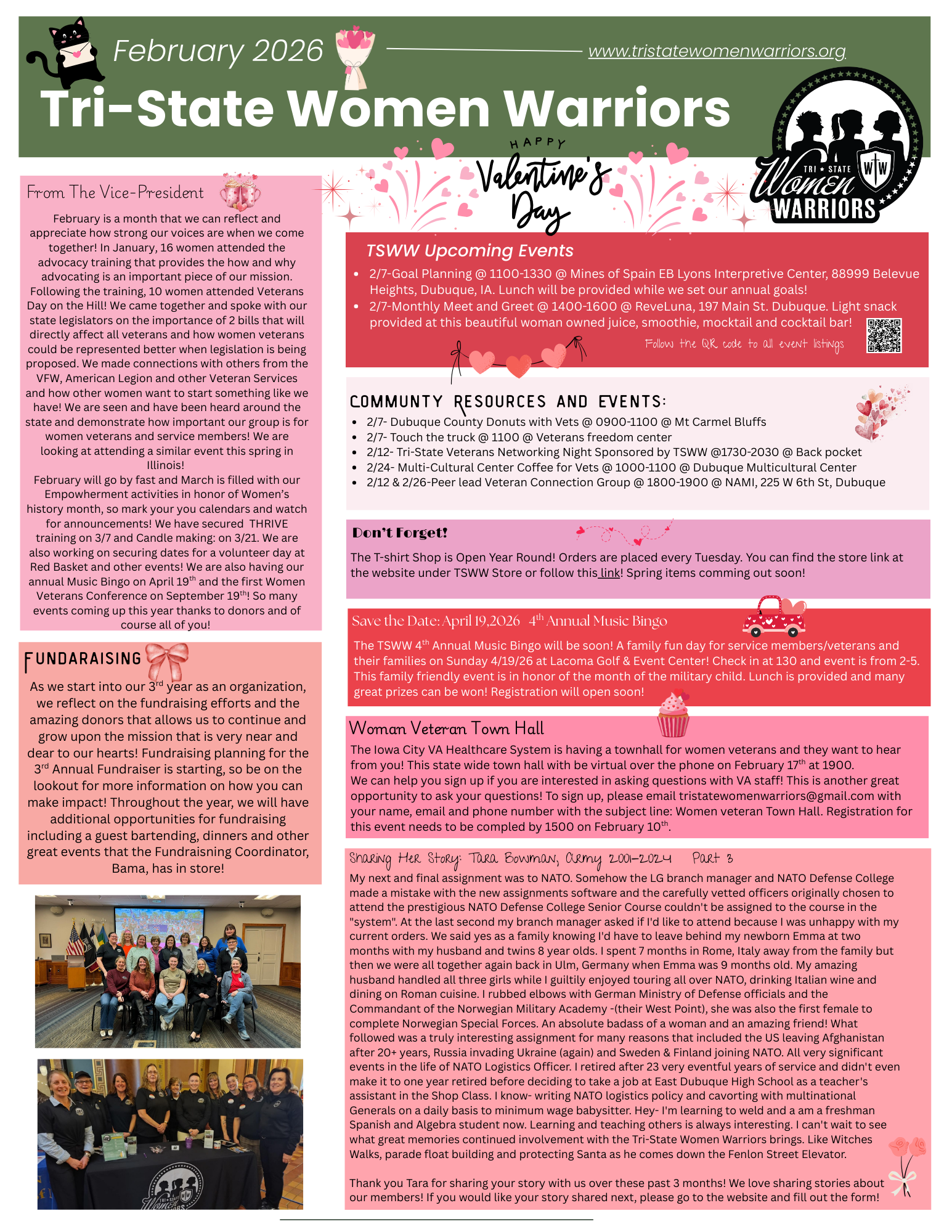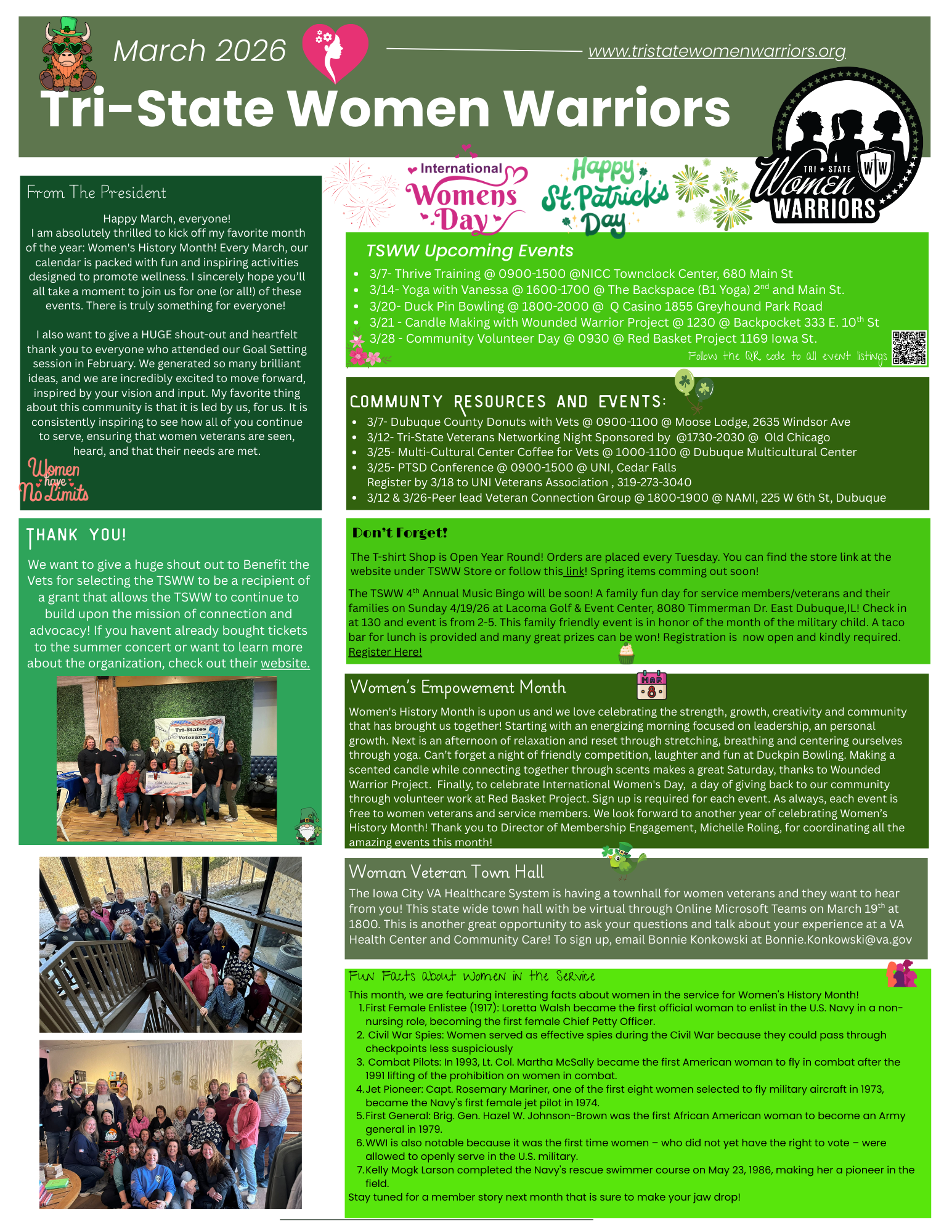 Here you can find our monthly newsletters with messages from Board Members, TSWW events, the stories of TSWW members and events that go on in our community that supports local veterans!